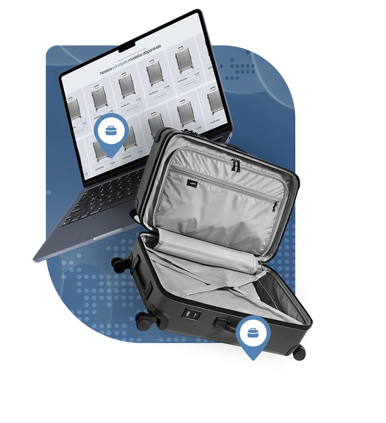 A mala é enviada com embalagem premium e proteção total, pronta para ativar o rastreamento.
